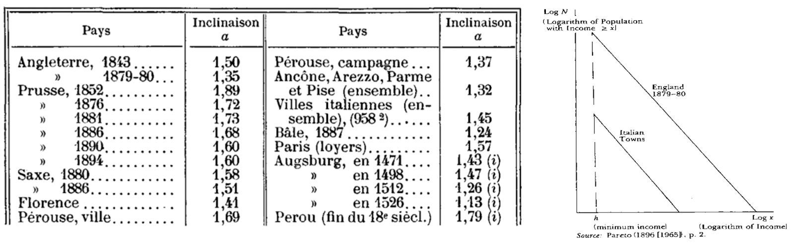 A finals del segle XIX ja trobem els primers estudis internacionals que utilitzaven dades per establir comparacions entre països. L’economista italià Vilfredo Pareto publicava La Courbe de la repartition de la richesse, que suposava una revolució en els estudis de desigualtat (Pareto, 1896). Fins llavors, les investigacions de desigualtat s’havien fet “sense dades” (Piketty, 2014), en el sentit que antecessors en aquest camp d’estudi com Adam Smith o Karl Marx no havien utilitzat la quantificació de manera tan sistemàtica com Pareto. A partir de la recopilació de dades fiscals històriques de diversos estats i ciutats-estat com Anglaterra, Florència o Pisa, Pareto va calcular que la distribució de la renda era sempre constant. En altres paraules, sense importar el moment històric o el règim polític, a tot arreu hi havia la mateixa desigualtat: el 80% de la població tenia el 20% de la riquesa i el 20% de la població tenia el 80% de la riquesa. Aquest fenomen és conegut com la “constant de Pareto” (vegeu Figura 1.1): “Statistics teaches us that the curve varies but little both in time and space; different peoples and different eras yield similar curves” (Pareto, 1909; citat per Creedy, 1997).