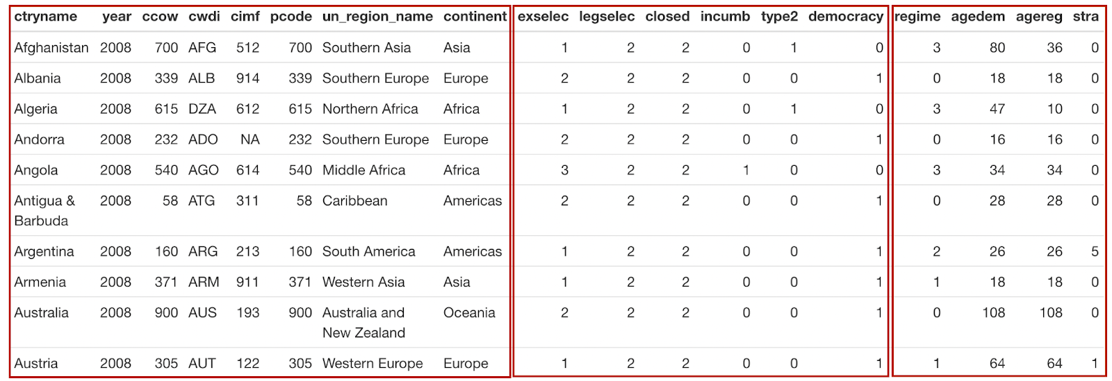 Cada marc de dades té una sola unitat d’observació. Per la unitat d’observació entenem el significat de cada una de les observacions d’un conjunt de dades. Poden ser països, persones, organitzacions internacionals, partits polítics, etc. i també poden mesurar un interval de temps determinat. En la taula de l’esquerra cada observació és un atac terrorista, mentre que en la taula de la dreta cada observació és l’any de la disputa militaritzada (podem dir-ne disputa-any).