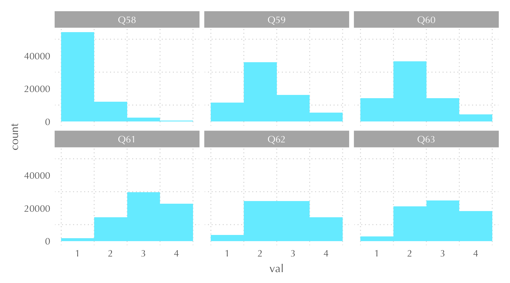 select(Q58, Q59, Q60, Q61, Q62, Q63) %>% #selecciona les variables