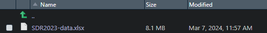 sheet = 4: indiquem que volem importar la quarta pestanya del document (és a dir, la pestanya SDR2023 Data)1.