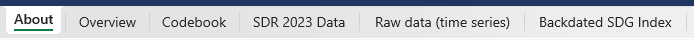 Les dades que ens interessen estan principalment ubicades a les pestanyes SDR 2023 Data i a Raw data (time series). I per entendre-les, serà imprescindible tenir en compte el llibre de codis, que es troba a la pestanya Codebook.